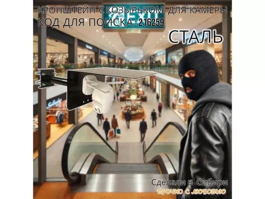 Кронштейн с козырьком для видеокамеры на трубу 15...51мм вылет 25см "HIWOLL-216259" чёрный