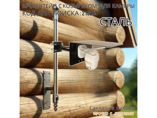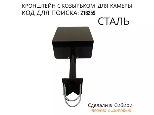 - Универсальный кронштейн с козырьком предназначен для крепления поворотной или цилиндрической камеры и прожектора на трубу.