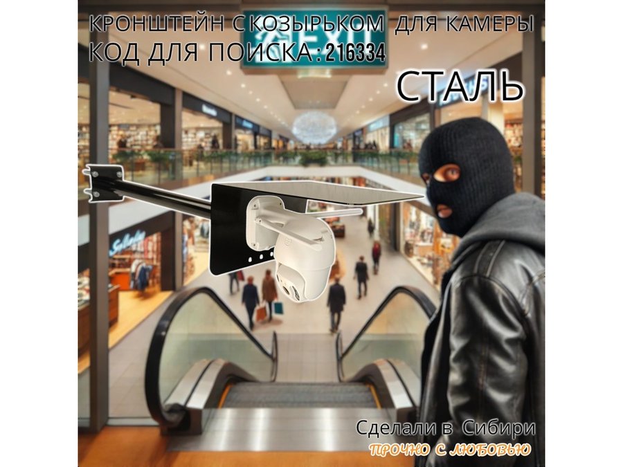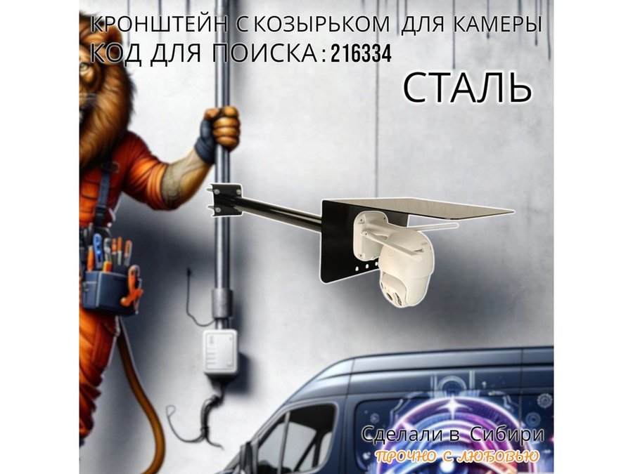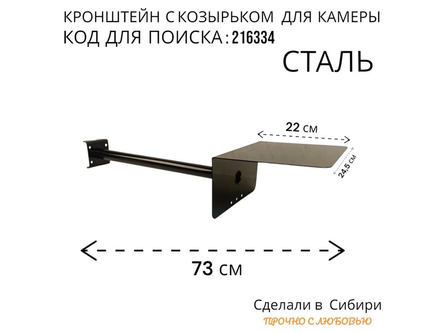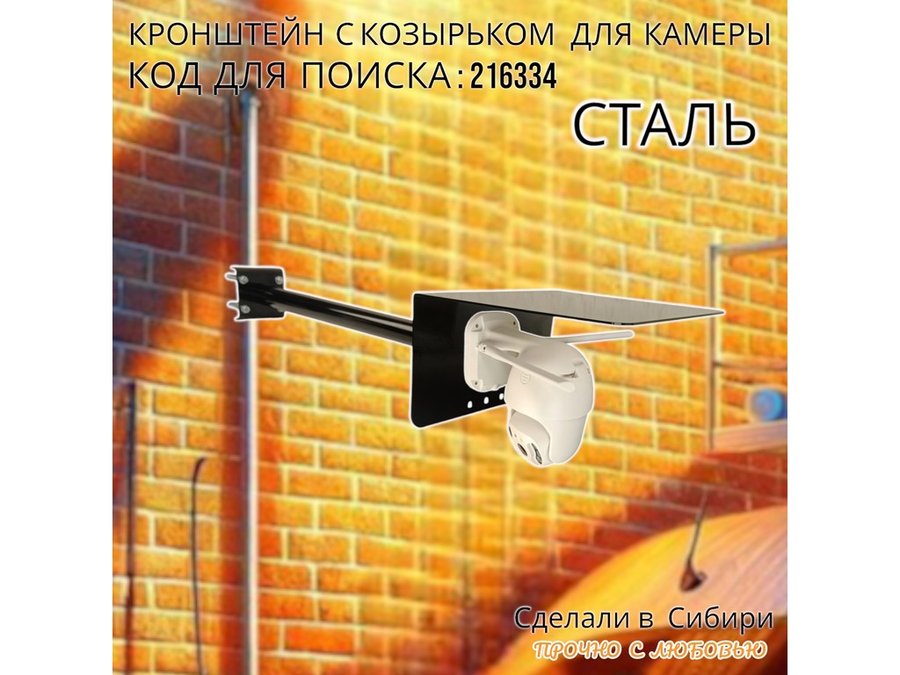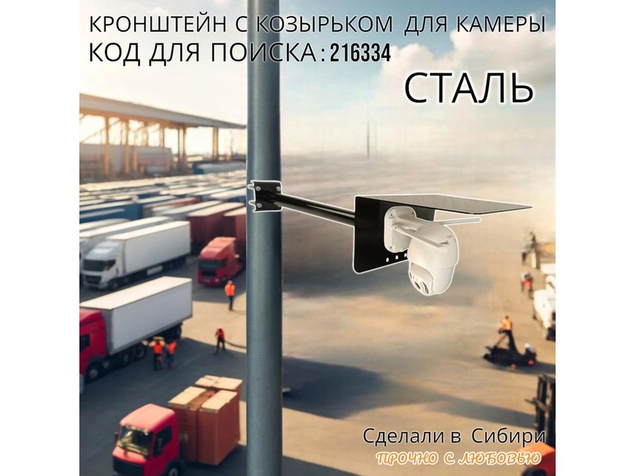 Кронштейн с козырьком для видеокамеры на трубу 15...51мм вылет 50см 24х22см "HIWOLL-216334" чёрный