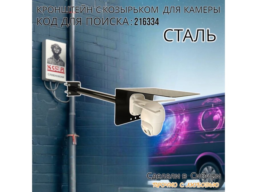 - Позволяет закрепить камеру на столбе забора, мачте, трубе, настенный кронштейне, коньковом антенном кронштейне. Вылет 50см.