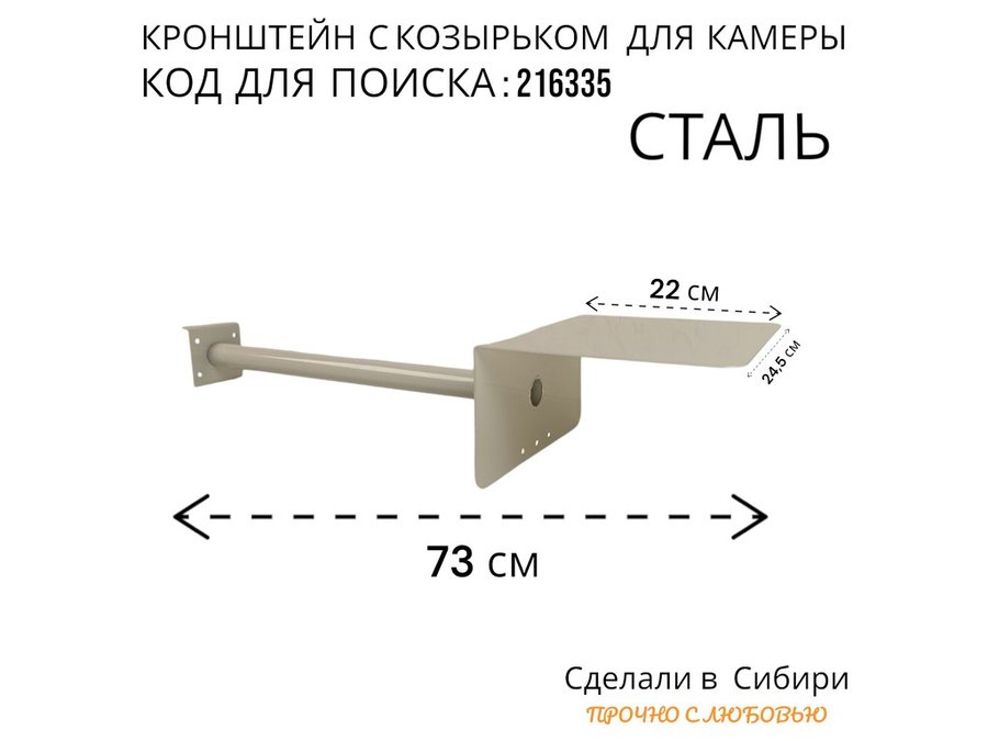 Кронштейн с козырьком для видеокамеры на трубу 15...51мм вылет 50см 24х22см "HIWOLL-216335" серый