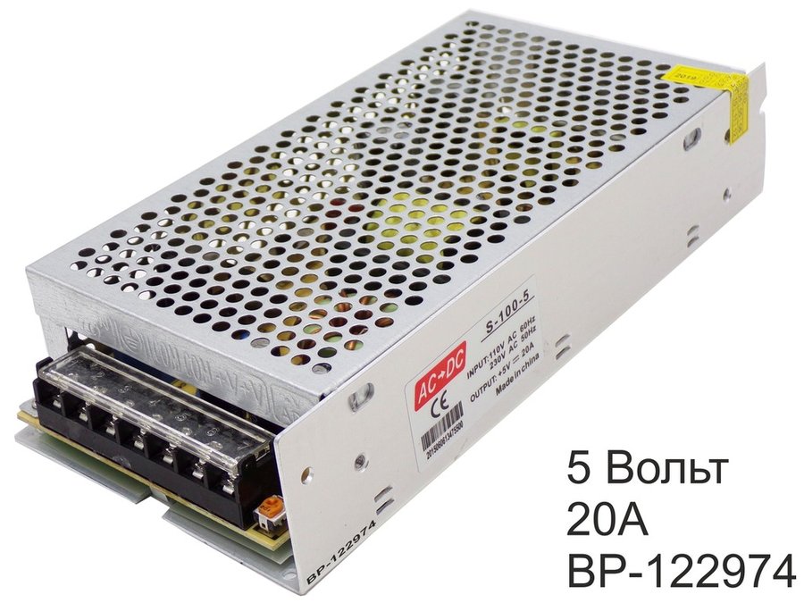 В корзину Купить в 1 клик Блок питания 5 Вольт20А "BP-122974" стабил.имп. встраиваемый 5В- 20A (корпус alx-17, 199*98*42)