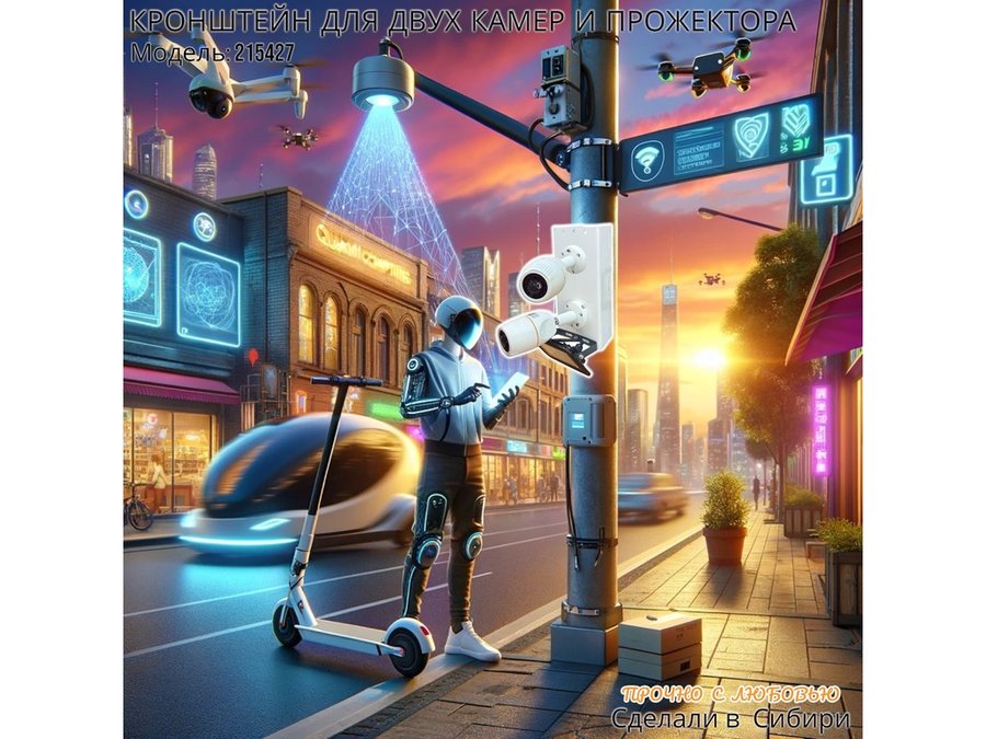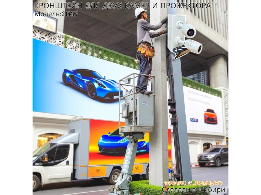 Набор 2 шт. Кронштейн для крепления двух камер и прожектора на столб при помощи СИП - ленты или хомутов