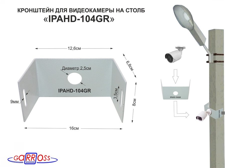 В корзину Купить в 1 клик Кронштейн мини для одной камеры на столб "IPAHD-104GR-127460" серый под СИП-ленту, 150мм