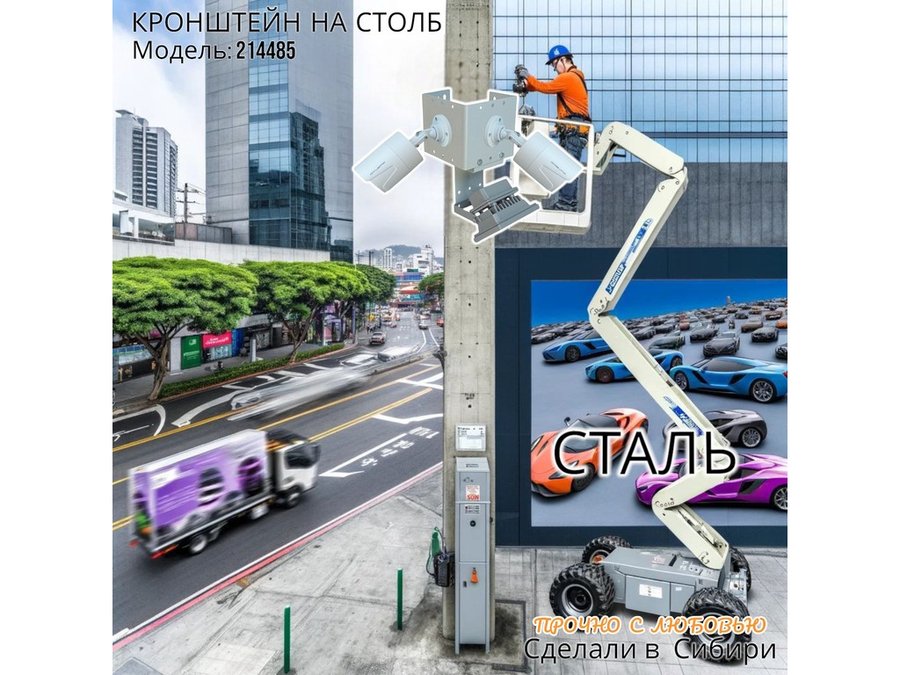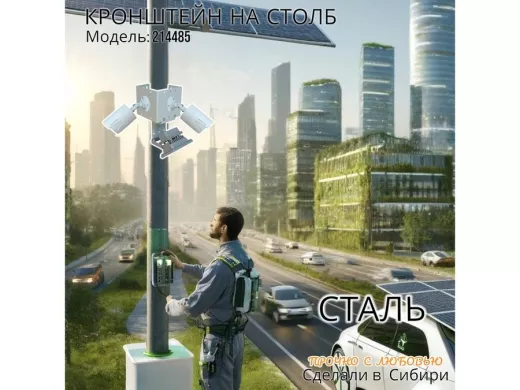 - Кронштейн позволяет быстро зафиксировать камеры видеонаблюдения или прожектор на столбе, не сверля его.