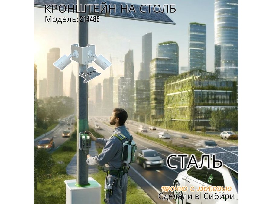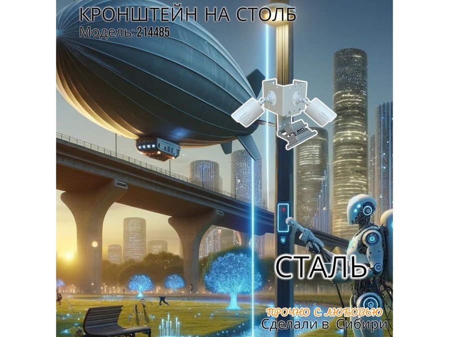 - Кронштейн для двух камер и прожектора, крепится при помощи СИП ленты монтажной на квадратный или круглый столб.