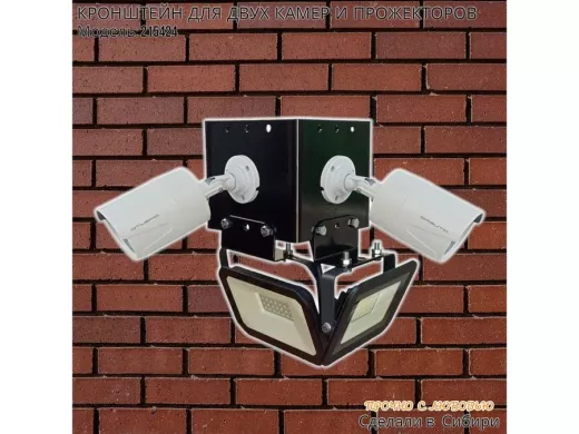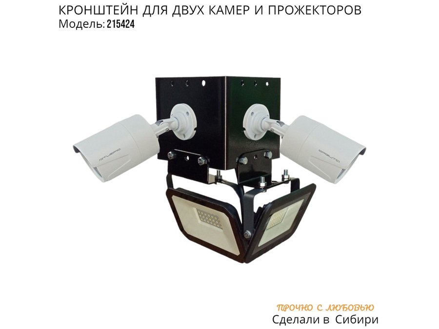 - Кронштейн для двух камер и прожектора, крепится при помощи СИП ленты монтажной на квадратный или круглый столб.