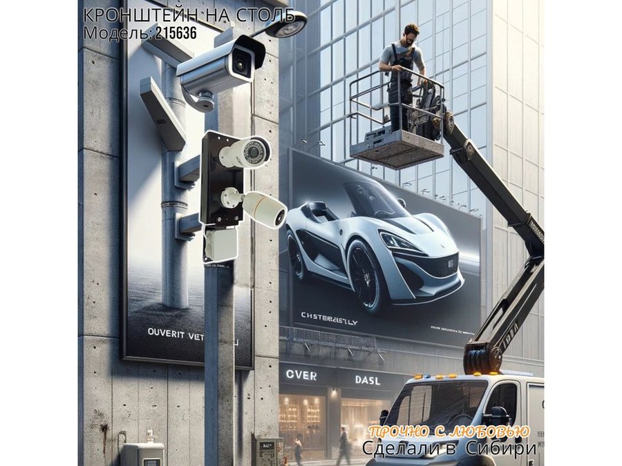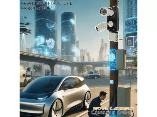Кронштейн с пластиной для монтажной коробки для крепления двух камер и прожектора на столб при помощи СИП - ленты или хомутов
