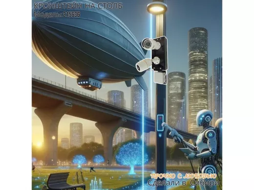 Кронштейн для двух камер и прожектора на столб с пластиной для гермокоробки черный IPAHD-5-215636