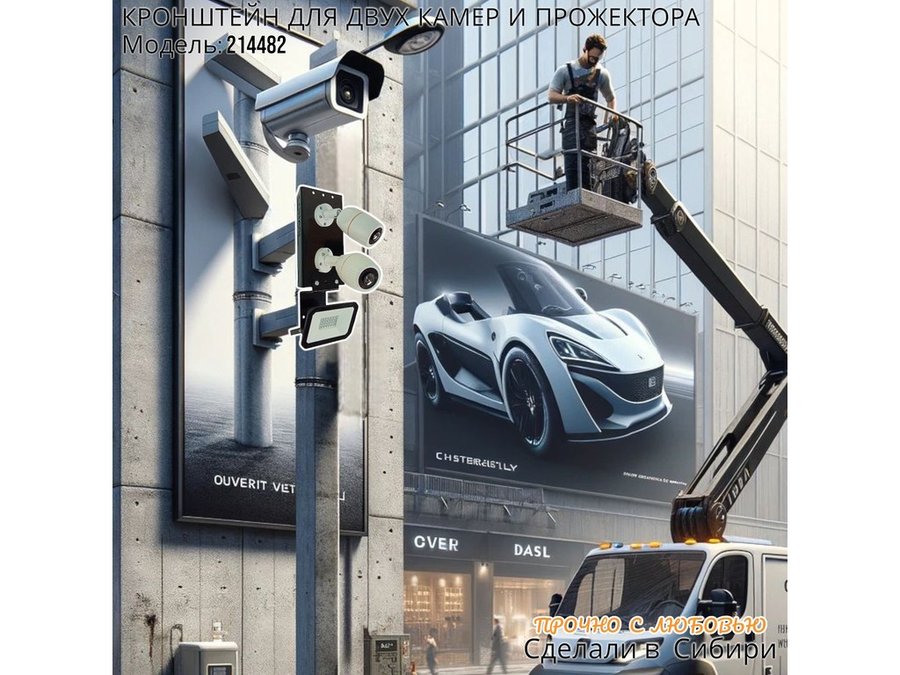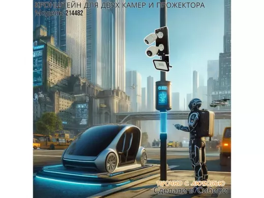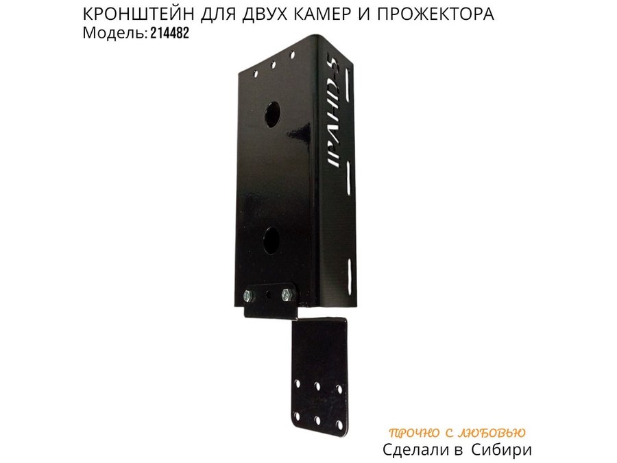 Кронштейн для двух камер на столб с пластиной под прожектор "IPAHD-5-214482" прочная сталь, черный