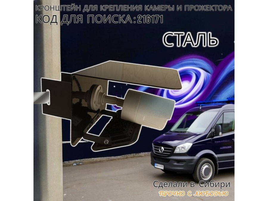 - Универсальный кронштейн с козырьком предназначен для крепления прожектора или камеры на столб.