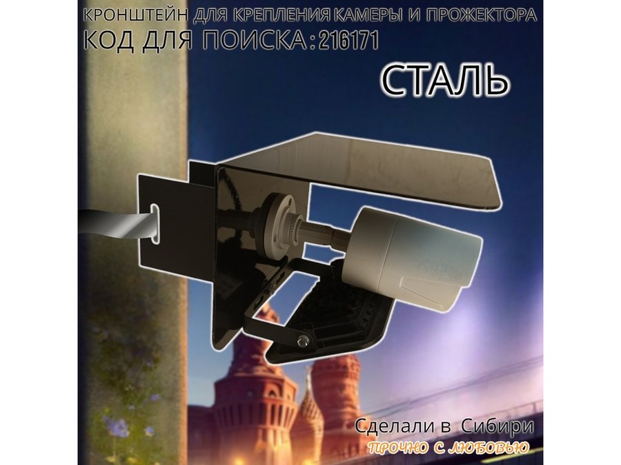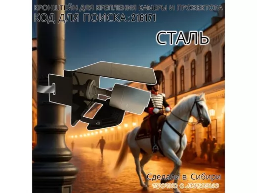Кронштейн для камеры и прожектора на столб с козырьком "IPAHD-216171" черный,под СИП-ленту или хомут
