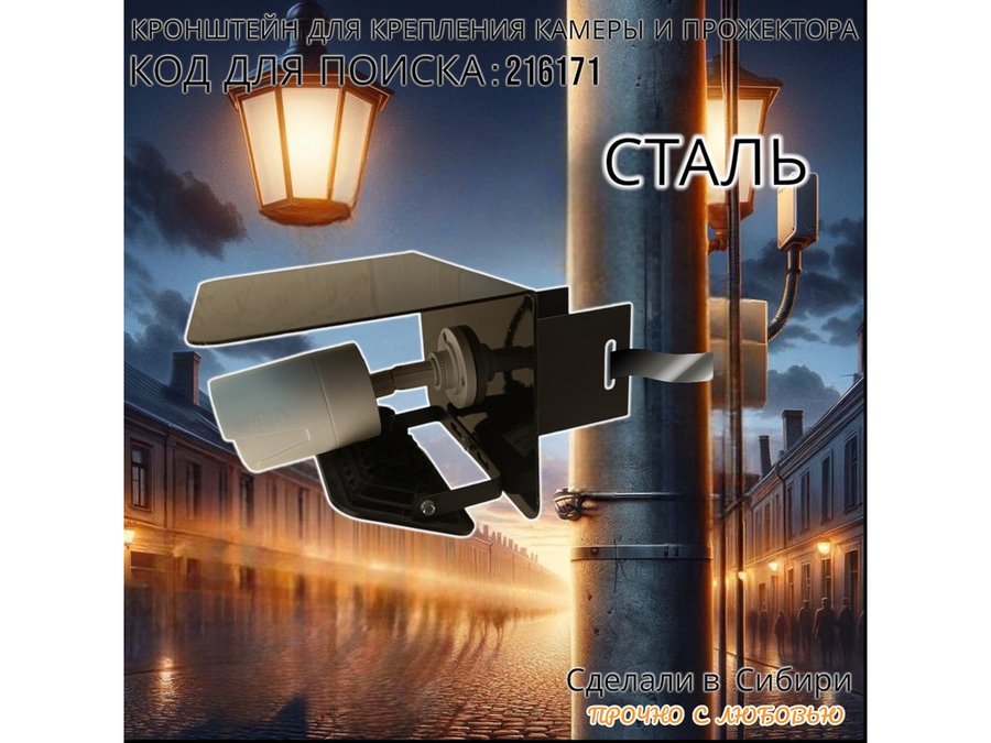 - Кронштейн позволяет быстро зафиксировать прожектор или камеру наблюдения на столб.