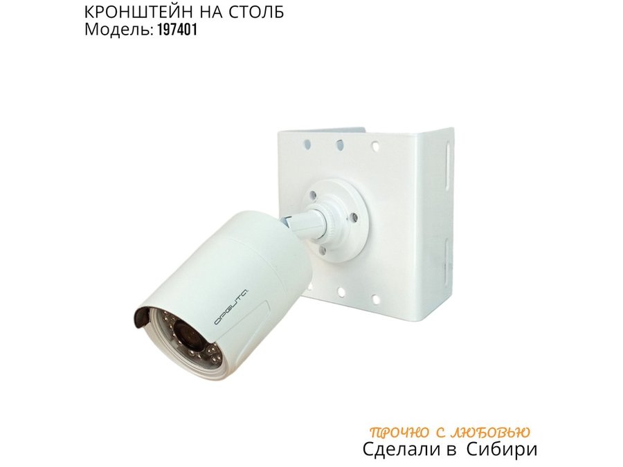 Кронштейн для 1 камеры и прожектора на столб, прочная сталь 2мм белый "IPAHD-101W-197401" под ленту