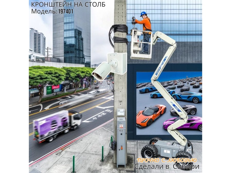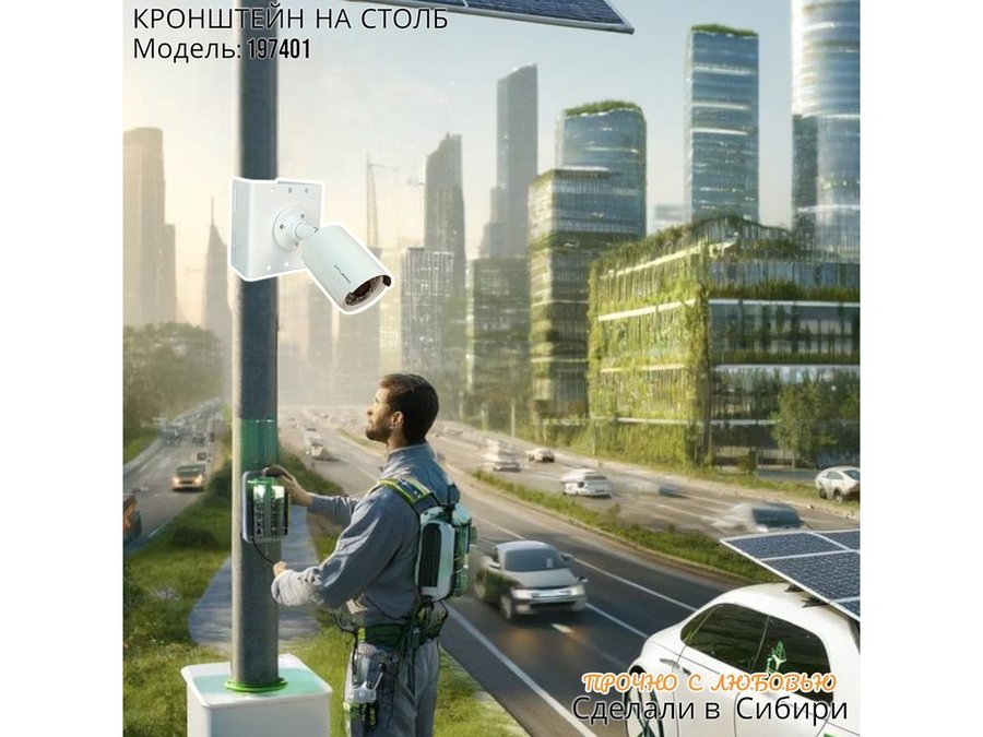- Кронштейн позволяет быстро зафиксировать камеру и прожектор на столбе, не сверля его.