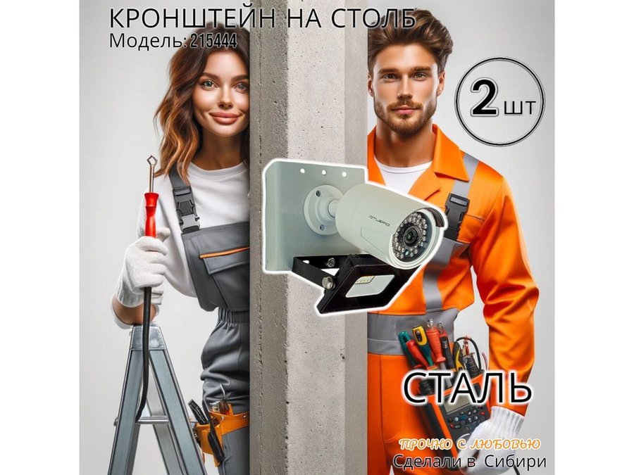 - Кронштейн для 1 камеры и прожектора, крепится при помощи СИП ленты монтажной на квадратный или круглый столб. Подходит для любых камер.