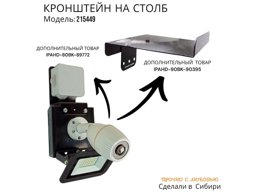 - Кронштейн позволяет быстро зафиксировать камеру и прожектор на столбе, не сверля его.