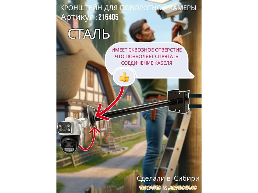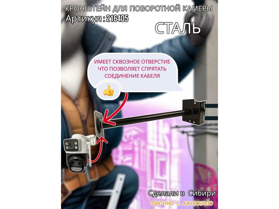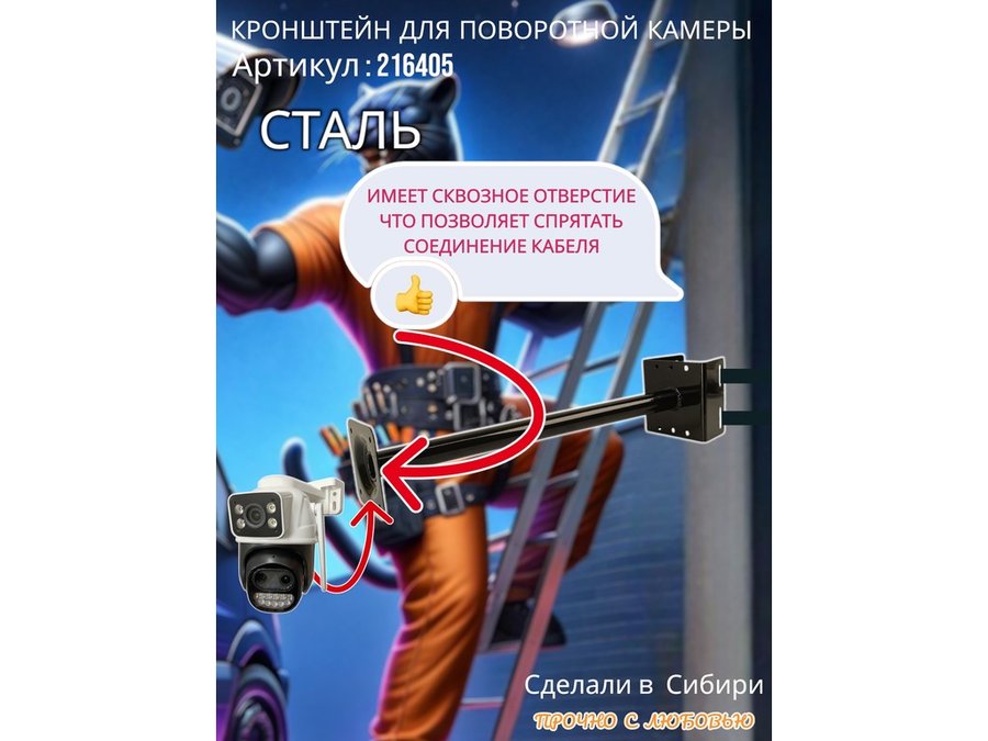 - Стальной кронштейн позволяет вынести камеру от столба на 50 см.
