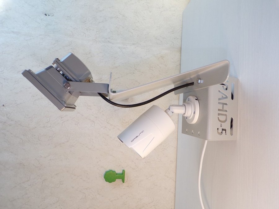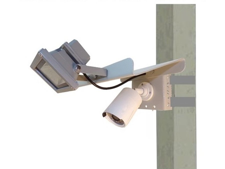 - Кронштейн позволяет быстро зафиксировать камеру и прожектор на столбе, не сверля его.