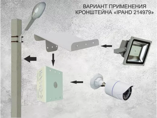 Кронштейн для камеры и прожектора на столб с козырьком и желобом серый "IPAHD-5-214979"