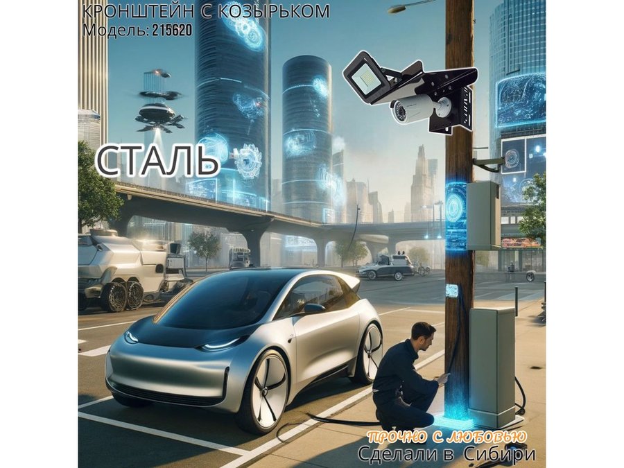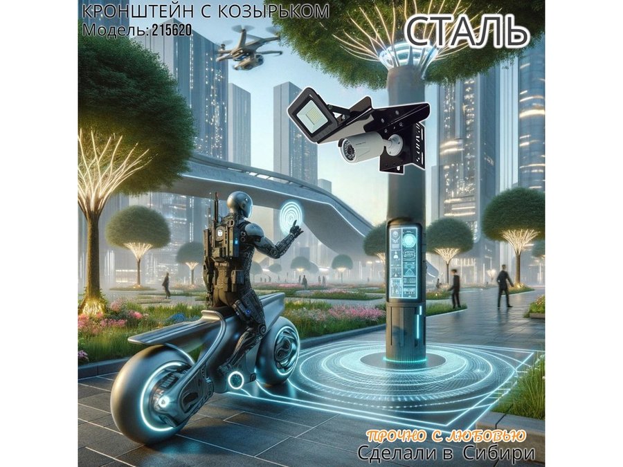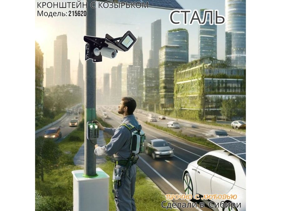 - Кронштейн позволяет быстро зафиксировать камеру и прожектор на столбе, не сверля его.
