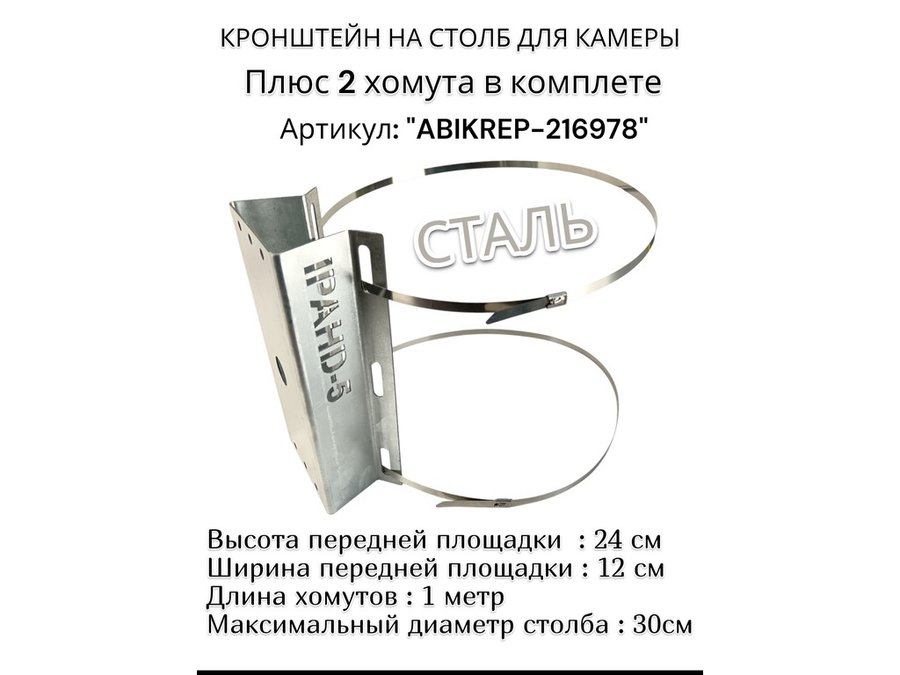 Кронштейн для камеры + 2 хомута, длиной 1 метр, для любых столбов