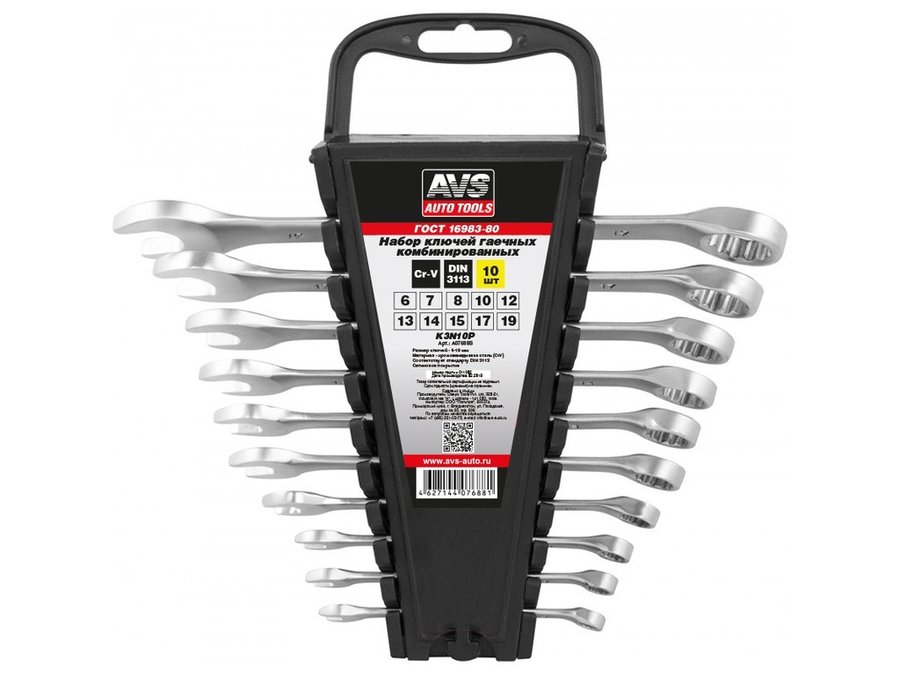 В корзину Купить в 1 клик Набор ключей гаечных комбинированных на держателе (6-19 мм) (10 предметов)