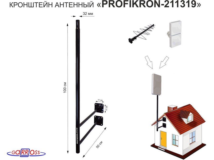 В корзину Купить в 1 клик Кронштейн антенный, вылет 0,5м, обжатая труба "PROFIKRON-211319" черный, вверх 1м, диаметр 32мм