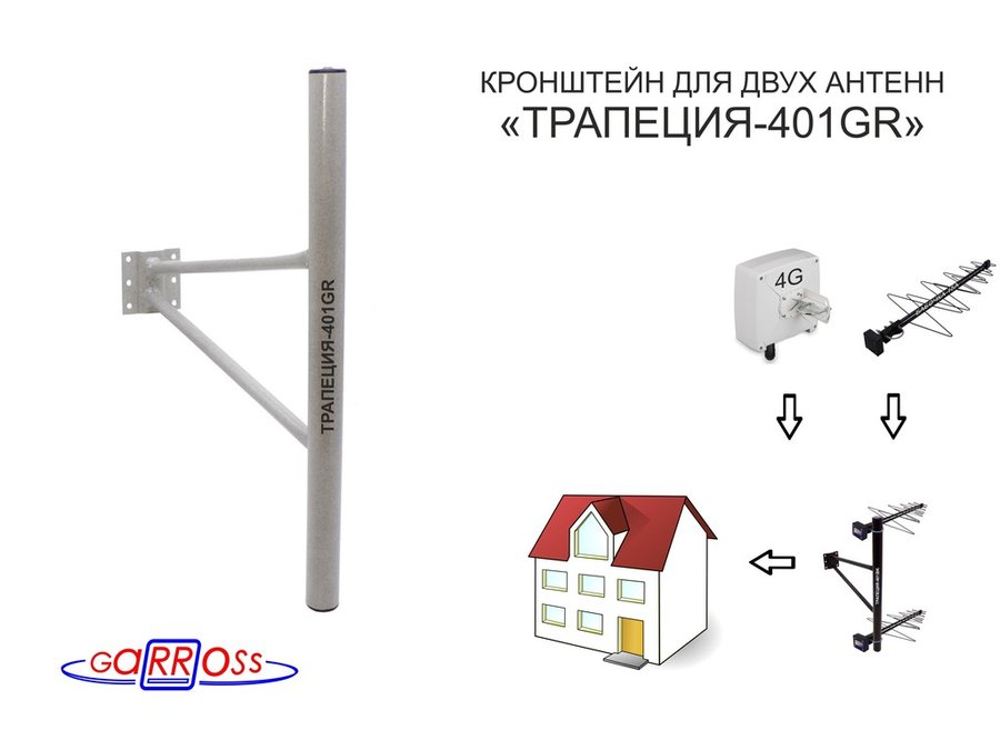 В корзину Купить в 1 клик Кронштейн антенный "ТРАПЕЦИЯ-401GR" СЕРЫЙ УСИЛЕННЫЙ вылет 0,4метра; диаметр трубы 32мм, высота 0,5м