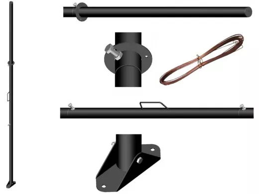 - В комплекте мачты: три трубы диаметром 50мм, подпятник и проволочные растяжки