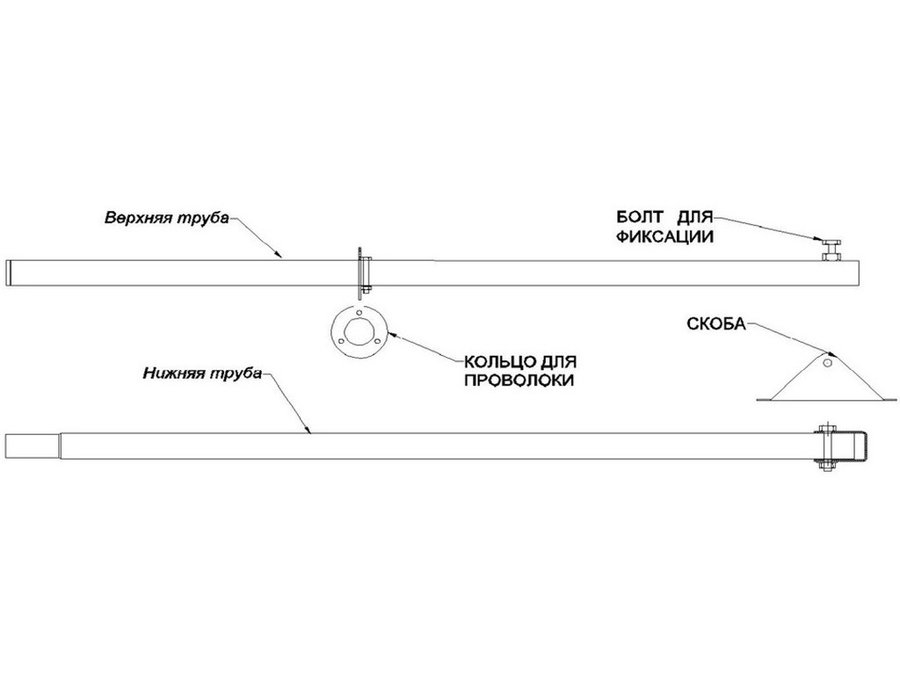 • В комплекте мачты: две трубы диаметром 32мм, подпятник и проволочные растяжки
