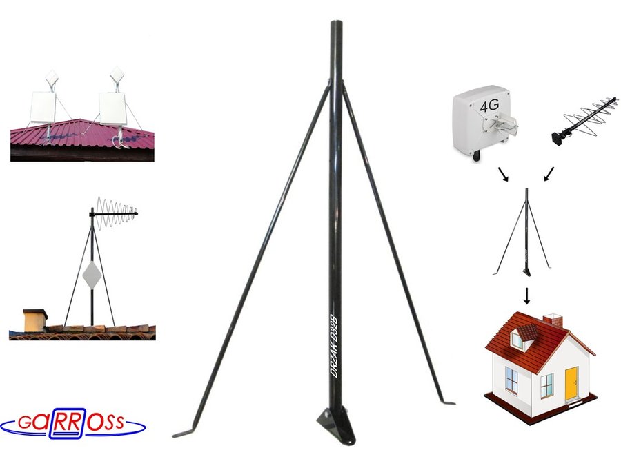 . Для антенн. Мачты на крышу или землю. "DRZAK-D32" диаметр 32мм с жёсткими растяжками.