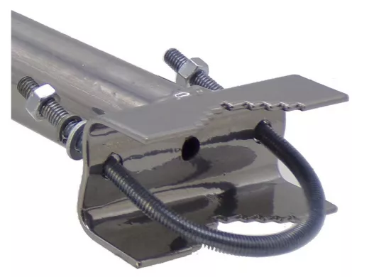 • Кронштейн надежно крепится на трубу при помощи хомута.