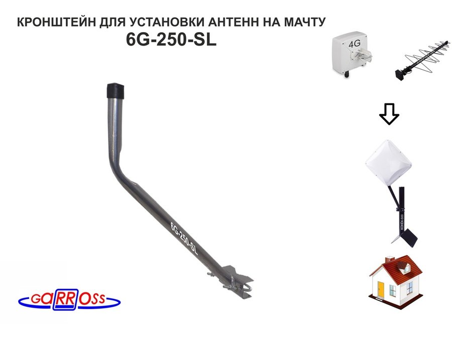 В корзину Купить в 1 клик Кронштейн антенный "6G-250-SL" СЕРЕБРИСТЫЙ с выносом вверх 0,45м, вылет 0,25м, с хом.,труба до 51мм