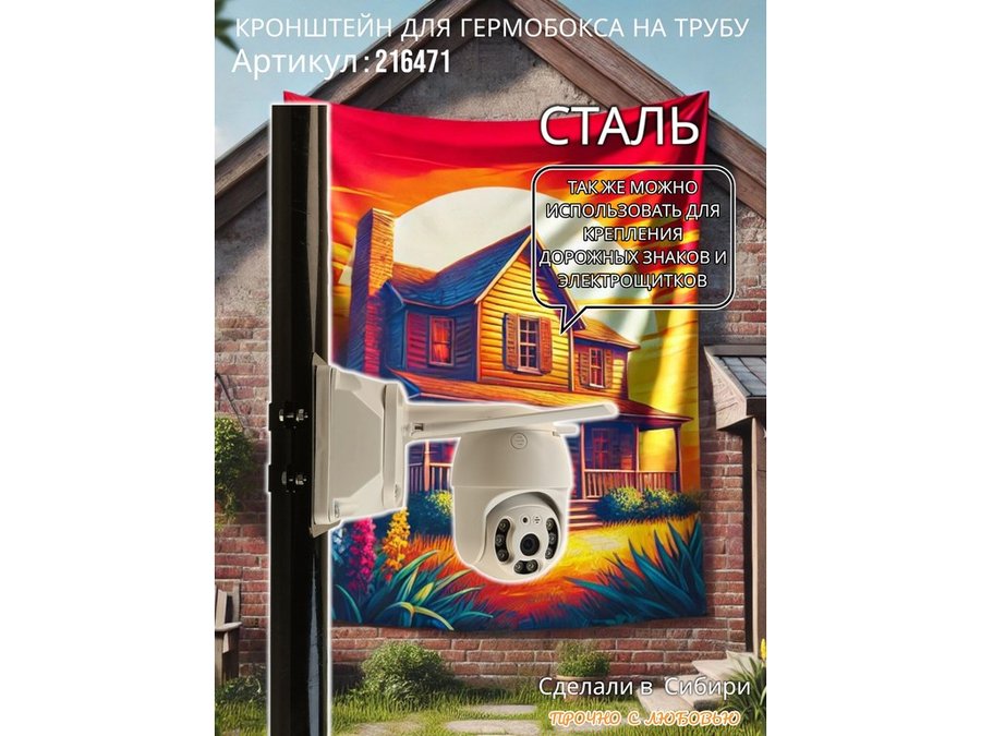 - Универсальный усиленный кронштейн предназначен для крепления гермобоксов,коробок с видеокамерой, дорожных знаков ,электрощитков на трубе диаметром 50мм.