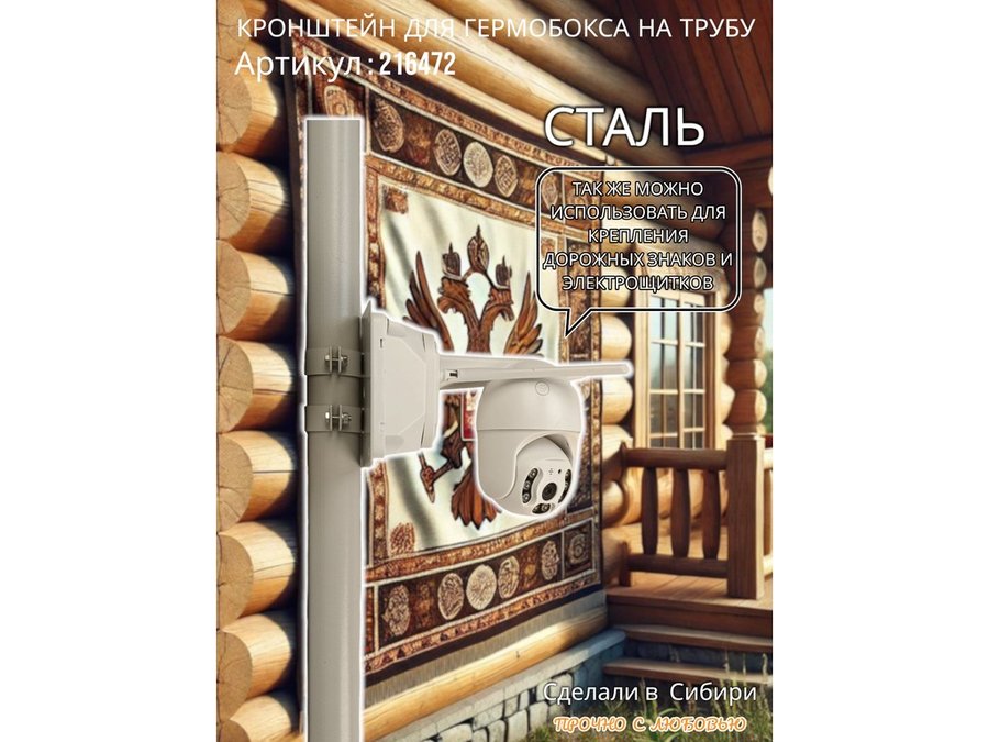 - Универсальный усиленный кронштейн предназначен для крепления гермобоксов,коробок с видеокамерой, дорожных знаков ,электрощитков на трубе диаметром 50мм.