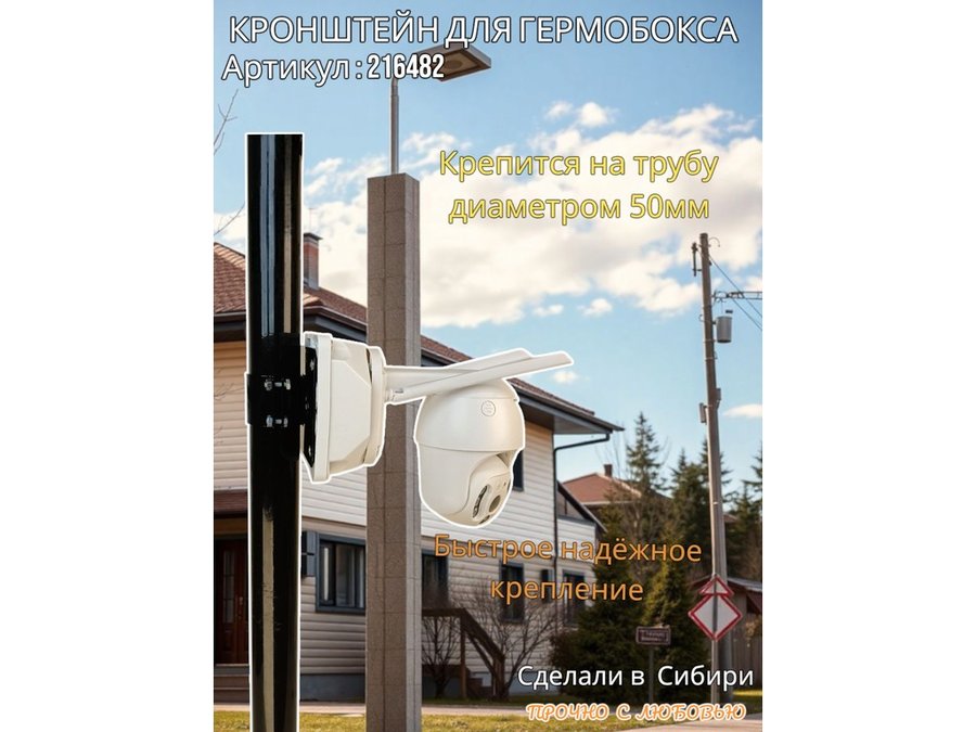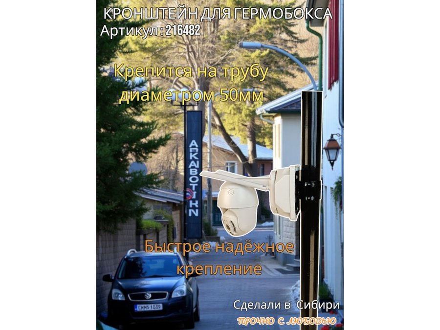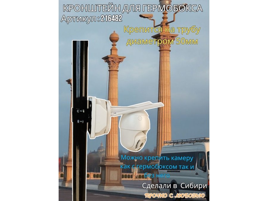 - Кронштейн позволяет быстро зафиксировать гермобокс с видеокамерой на трубу.