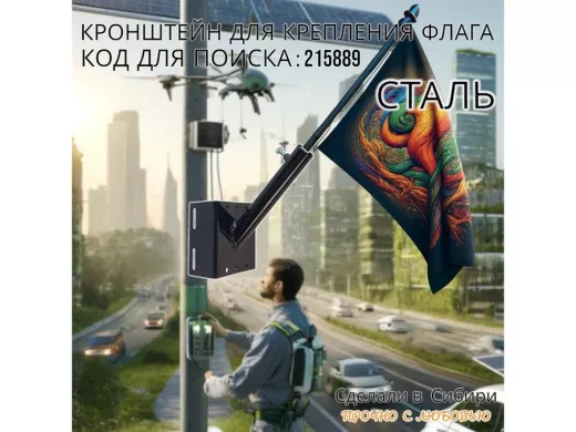 Кронштейн позволяет быстро и прочно зафиксировать флаг или вазон на столбе без его сверления.
