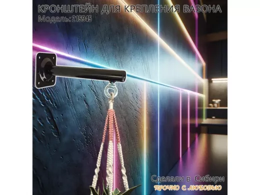 Кронштейн для крепления кашпо, вазона на стене угол 90гр вылет 25см "ПРОСЕКИНО-215945" сталь, черный