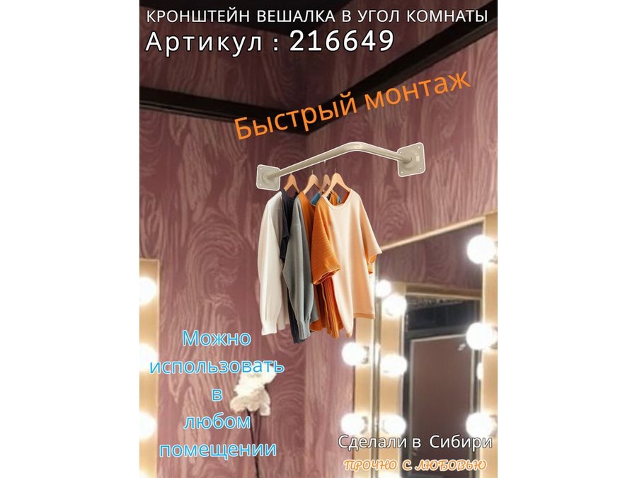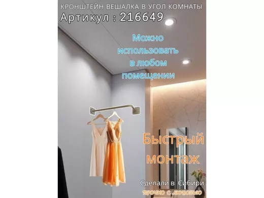 • Кронштейн для плечиков с одеждой, используется для установки в угол комнаты или к потолку.