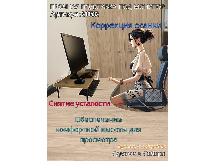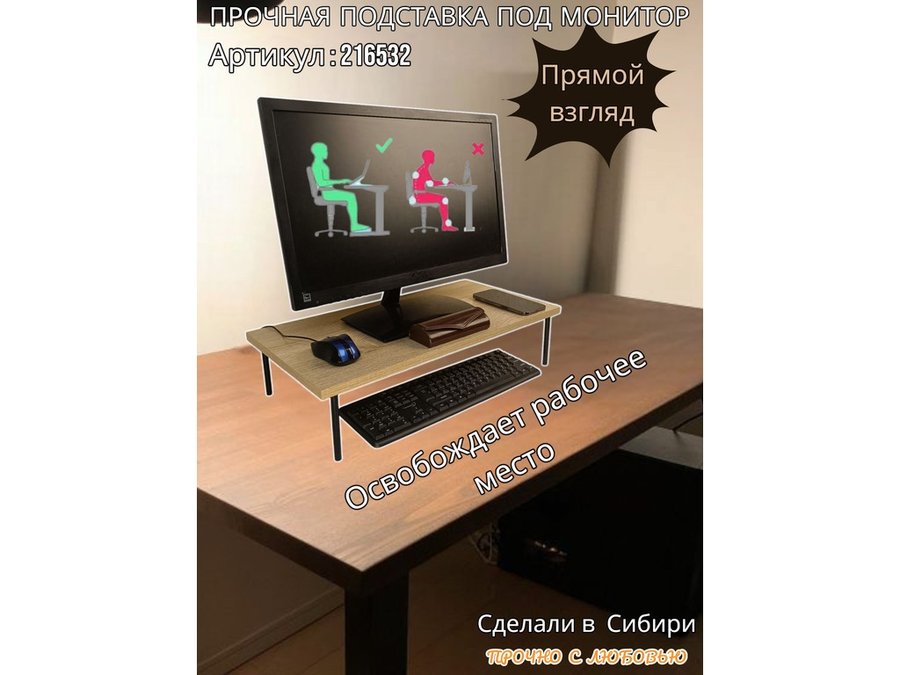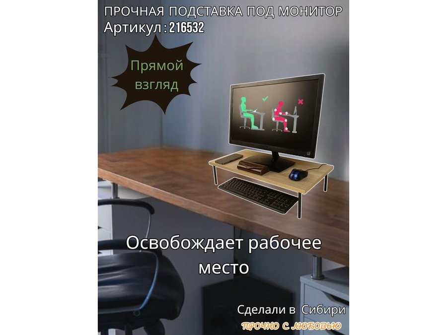 - Универсальная подставка для монитора имеет лаконичный и стильный дизайн, идеально подойдет для любого интерьера.