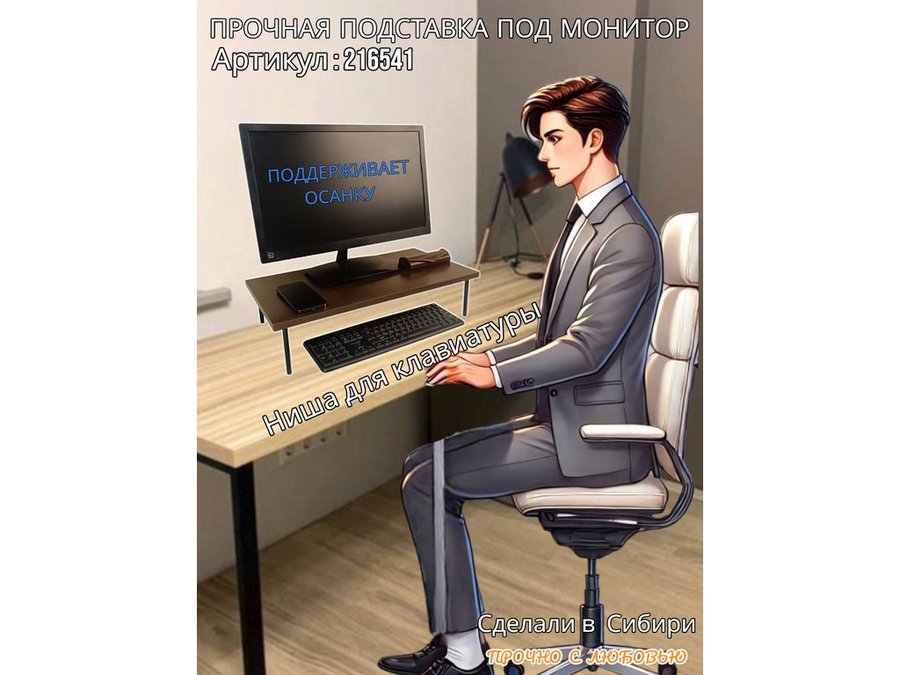 - Универсальная подставка для монитора имеет лаконичный и стильный дизайн, идеально подойдет для любого интерьера.