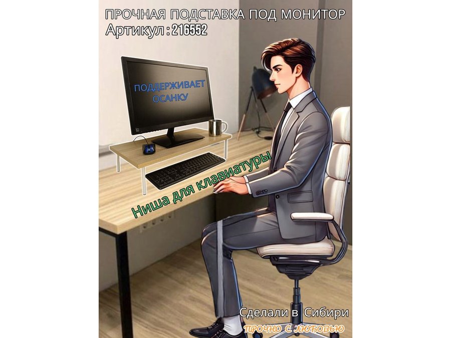 • Универсальная подставка для монитора имеет лаконичный и стильный дизайн, идеально подойдет для любого интерьера.