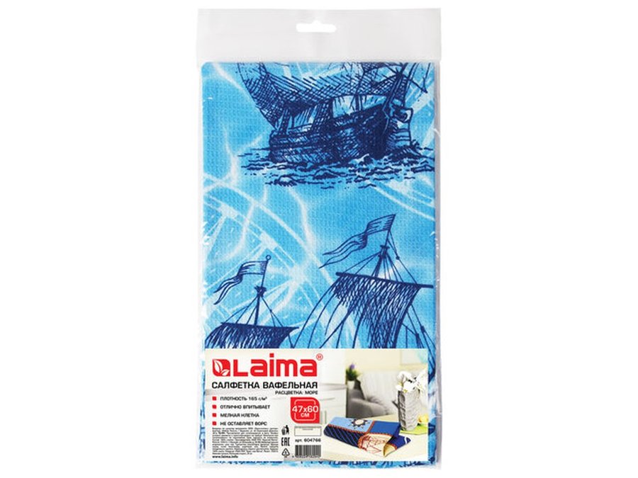 В корзину Купить в 1 клик Полотенце ВАФЕЛЬНОЕ набивное, 47х60см, плотность 165 (+10) г/м2, "Море", европодвес "BR-78151"