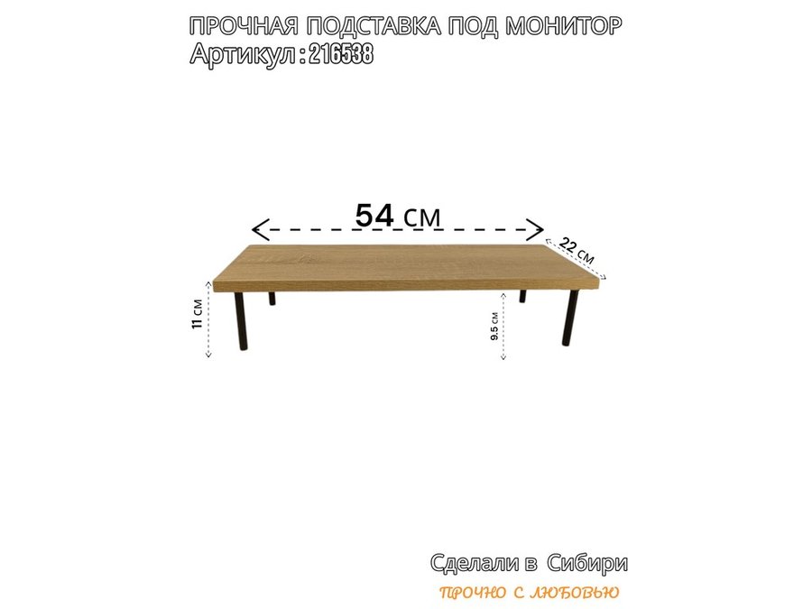 Подставка под монитор на стол 54х22см высота 11см, дуб сонома "ABBIKUS-216538" черные ножки