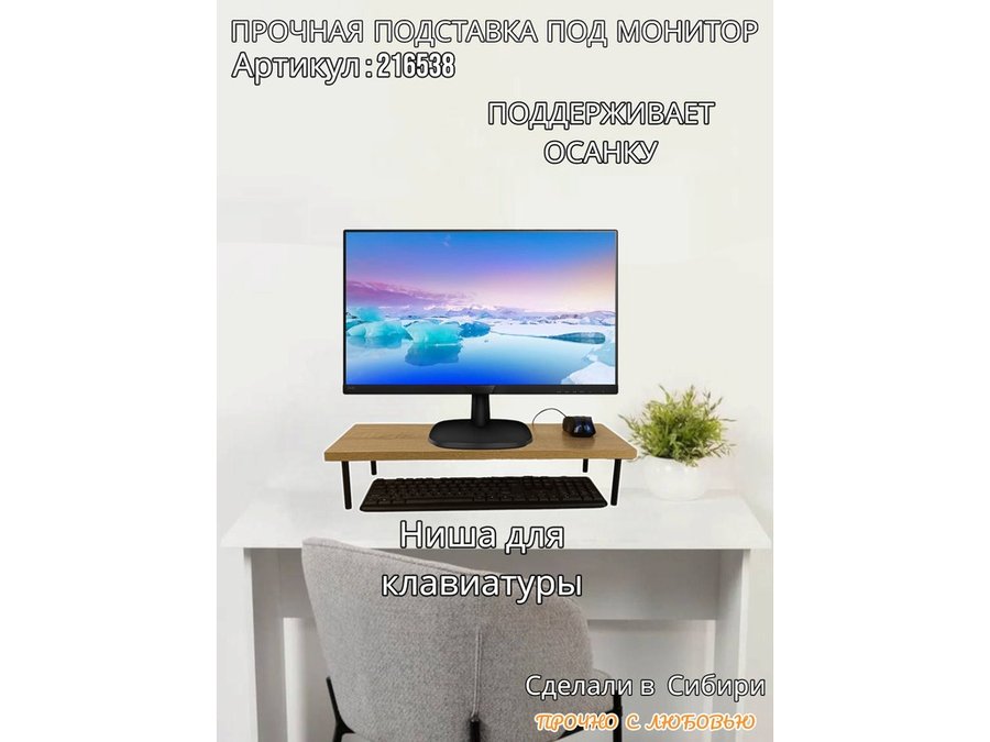 - Универсальная подставка для монитора имеет лаконичный и стильный дизайн, идеально подойдет для любого интерьера.