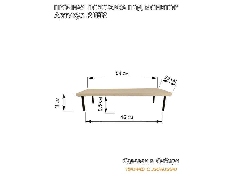Подставка под монитор на стол 54х22см высота 11см, сосна выбеленная "ABBIKUS-216562" черные ножки