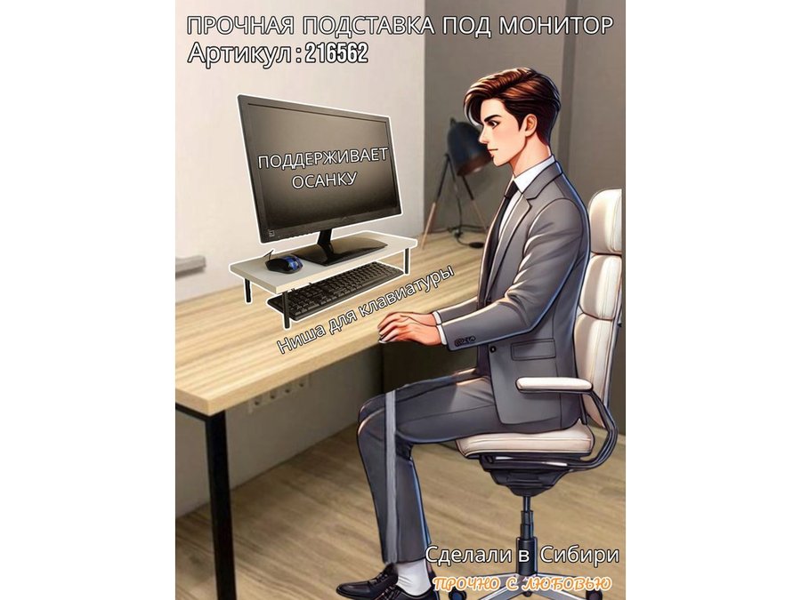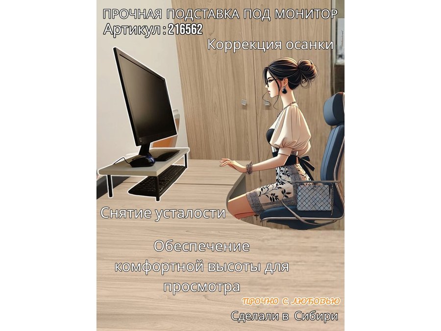 - Универсальная подставка для монитора имеет лаконичный и стильный дизайн, идеально подойдет для любого интерьера.