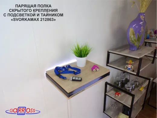 Парящая полка скрытого крепления с подсветкой и тайником, черный "SVORKAMAX 212863" 30х40 см, дуб
