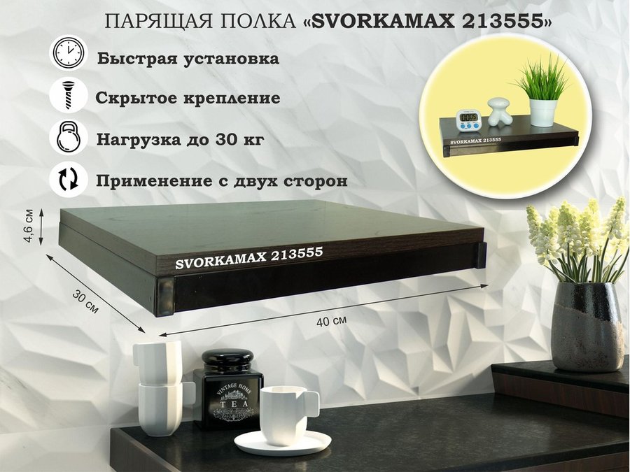 . Полки скрытого крепления "SVORKAMAX" парящие полки 40х30 см